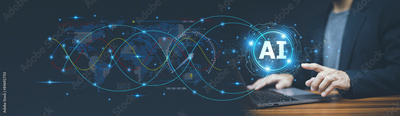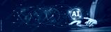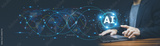 Businessman using ai artificial intelligence management in logistic system support human work and reduce time to work in process.AI assitant planing to import export for business.