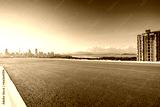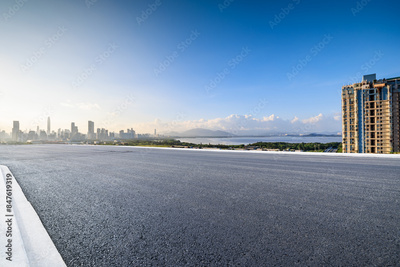 Asphalt highway road and city skyline with modern buildings in Shenzhen