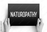 Naturopathy is a form of healthcare that combines modern treatment with traditional methods, text concept on card