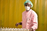 African worker are working in beverage factory.