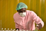 African worker are working in beverage factory.