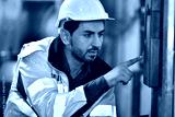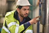 Manager inspecting in product factory. Engineer checking machine in factory. Worker in factory.