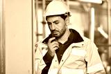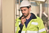 Manager inspecting in product factory. Engineer checking machine in factory. Worker in factory.