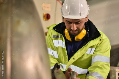Manager inspecting in product factory. Engineer checking machine in factory. Worker in factory.