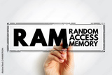 RAM Random Access Memory - form of computer memory that can be read and changed in any order, acronym text concept stamp