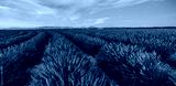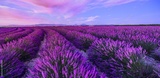 Picturesque colorful floral atmosphere. Beautiful panoramic view French blooming scenic at sunset. Sunset violet lavender flower field in Provence, France, Valensole. Summer nature amazing landscape