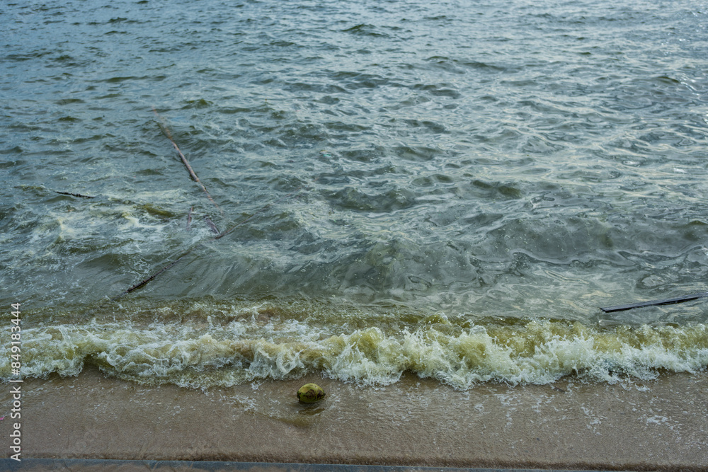 Green Sea natural plankton boom Bangsaen, Chonburi, Thailand. Plankton bloom in the sea. The phenomenon of sea water changing color or the phenomenon of whale poop