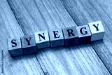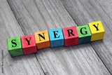 word synergy on colorful wooden cubes