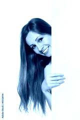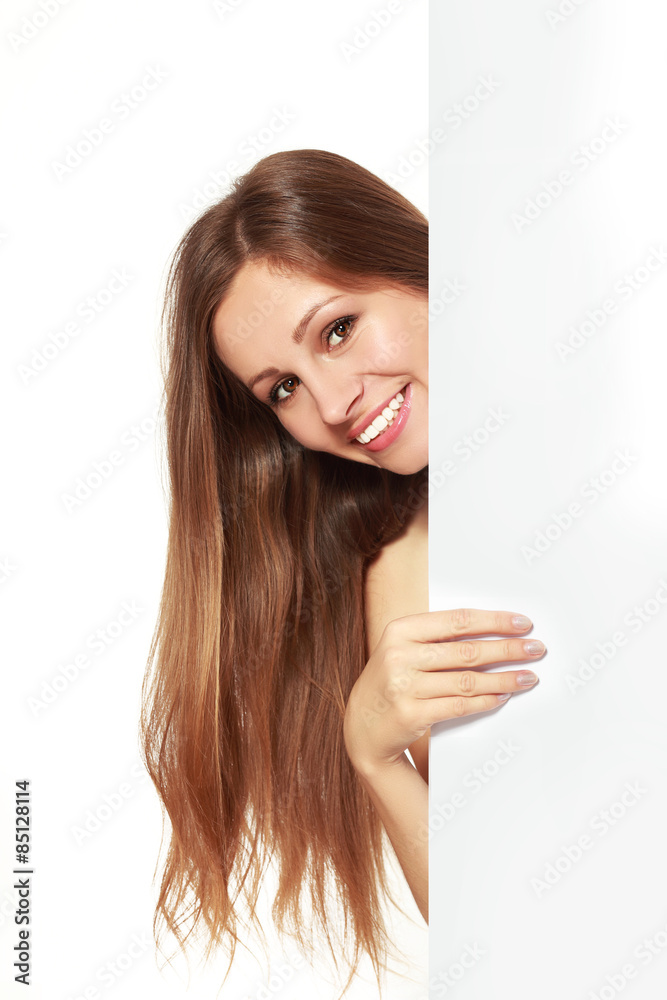 woman showing blank signboard