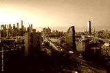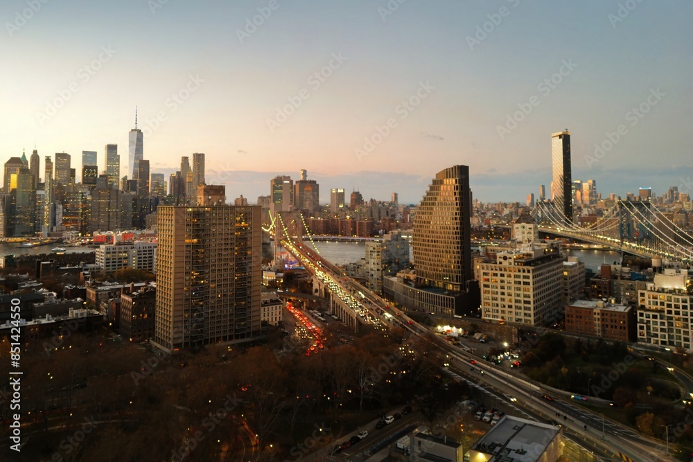 Skyline of NYC. New York City skyline from Brooklyn Bridge. Brooklyn buildings of New York. New Skyline of NYC with Brooklyn Bridge. Brooklyn Side of NY.