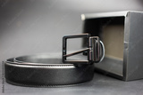 Men belts made of genuine black with a metal buckle. Packed in a gift box