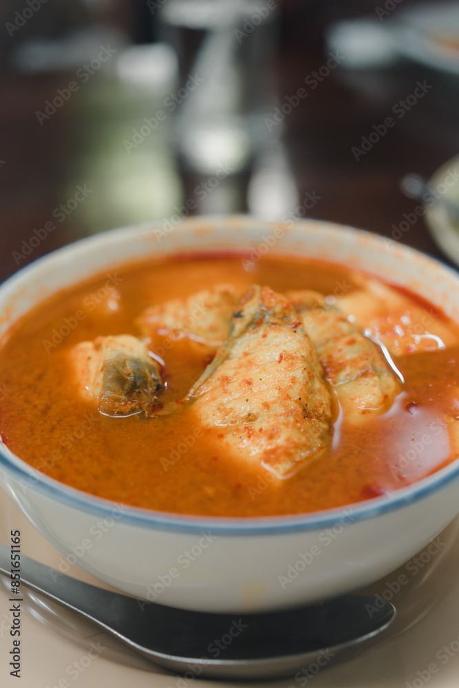 Authentic Thai southern spicy and sour yellow curry with fish.
