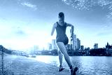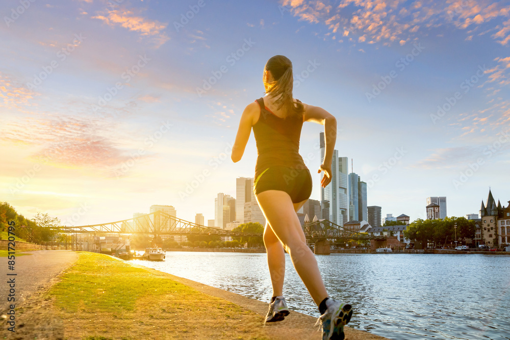 Junge Frau beim Sport am Mainufer, Frankfurt am Main