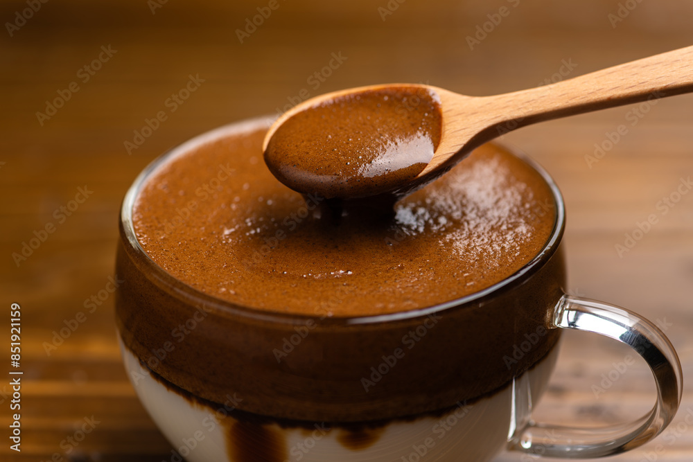 木製のスプーンとダルゴナコーヒー
