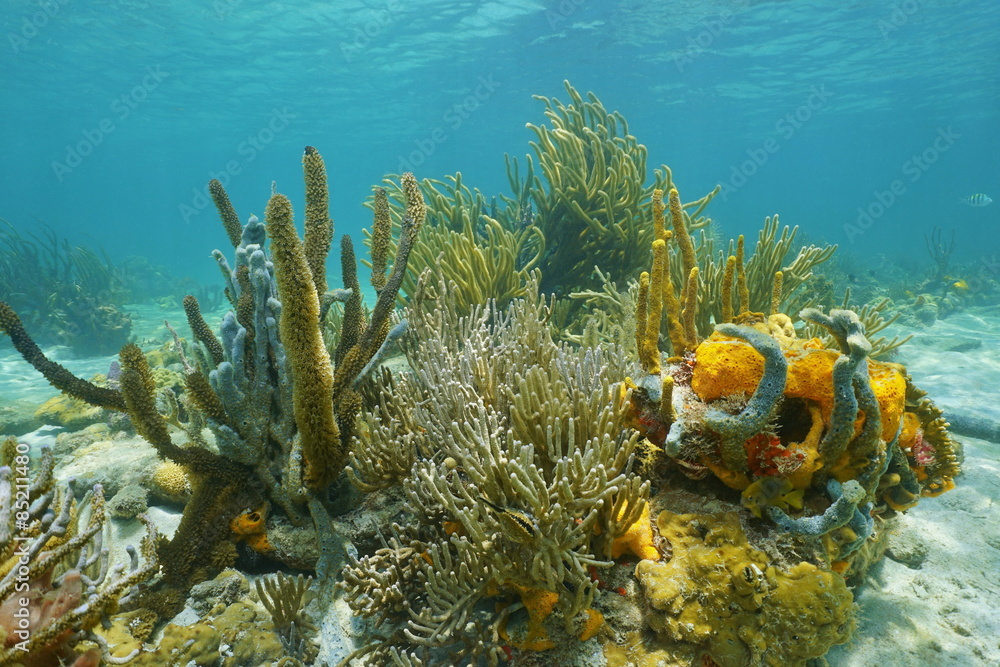 Octocorals and colorful sponges on the seabed
