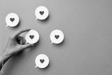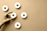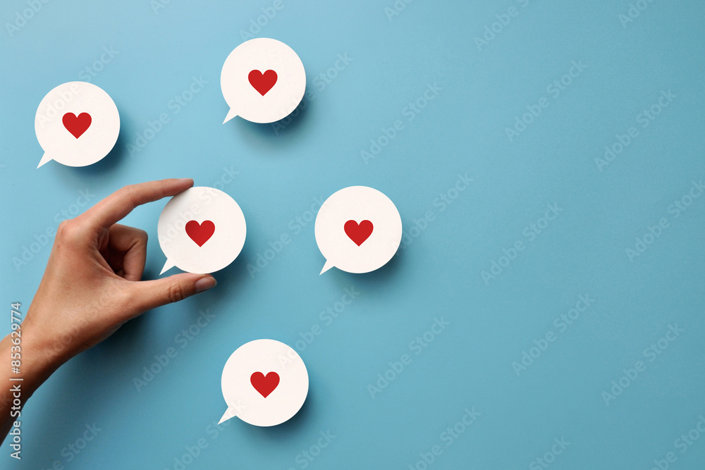 Red paper hearts on conversational clouds. Sincere conversations, good comments