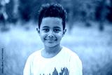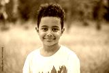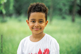 Close up portrait of an eight year old mixed race boy, summer outdoor