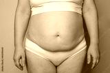 Woman with fat abdomen close up