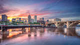 Saint Paul, Minnesota, USA. Cityscape image of downtown St. Paul, Minnesota, USA with reflection of the skyline in Mississippi River at beautiful summer sunset.