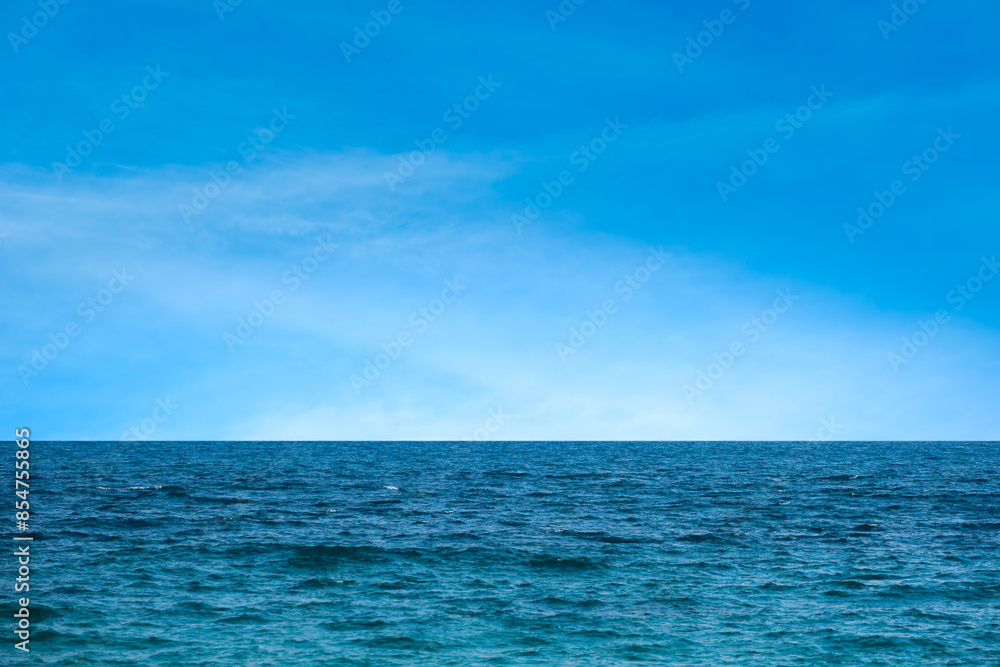 Ocean background and sea water and clear sky. For summer vacation ideas The nature of the beach and summer sea with the sun shining on the sea sparkling against the blue sky.
