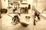 miniature world tiny dolls inhabiting meticulously crafted retro-style dollhouse kitchen scale kitchen roombox, childhood memories