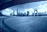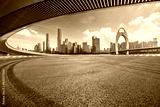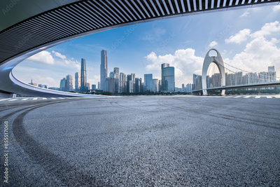 Asphalt road square and bridge with modern city buildings scenery in Guangzhou. Road and city skyline background.