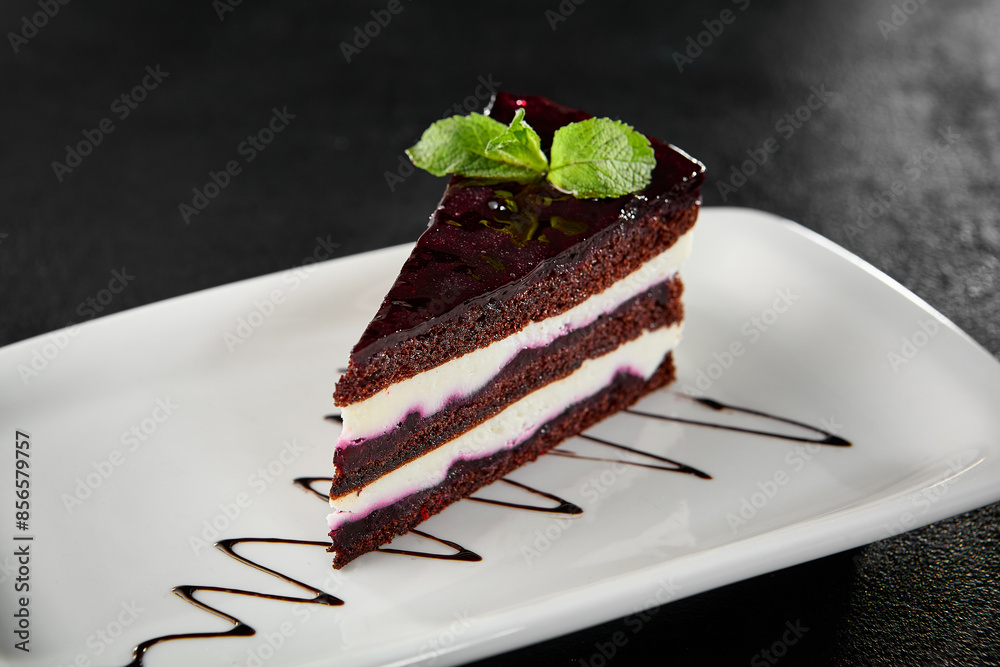 Delicious Chocolate Cake with Cream Cheese Layer on White Plate
