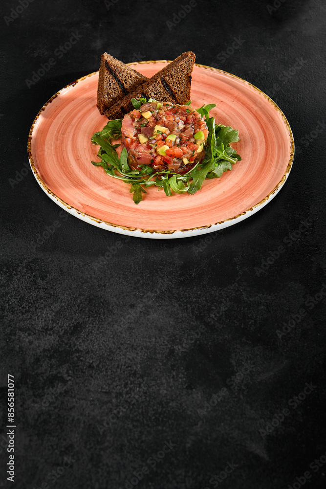Fresh Tuna Tartare with Avocado and Crispy Croutons on a Stylish Plate