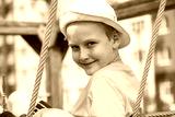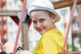 Portrait of a little boy wearing a yellow t-shirt