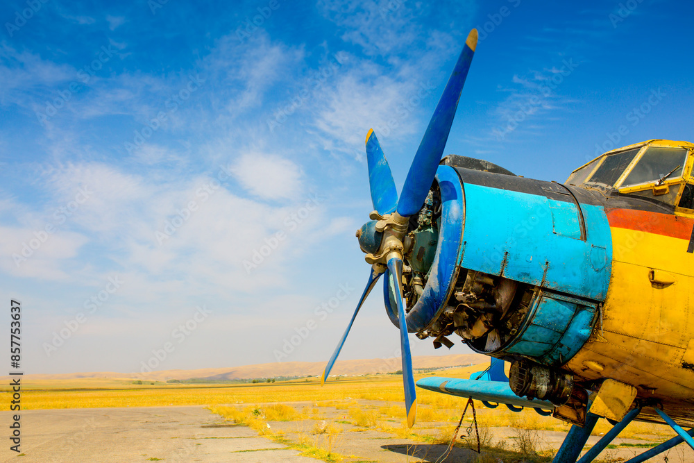 Repair and maintenance of propeller-driven aircraft. Engineers are repairing small aircraft.