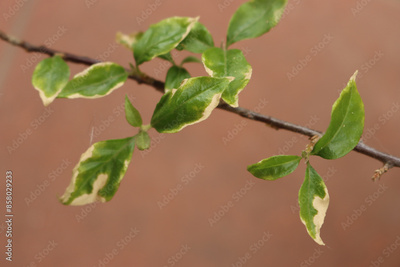 Close-up of pink Bounganville with disease. Bounganville bush with leaves with dry brown spots