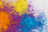Top View of Vibrant Holi Powder Explosion on White Background