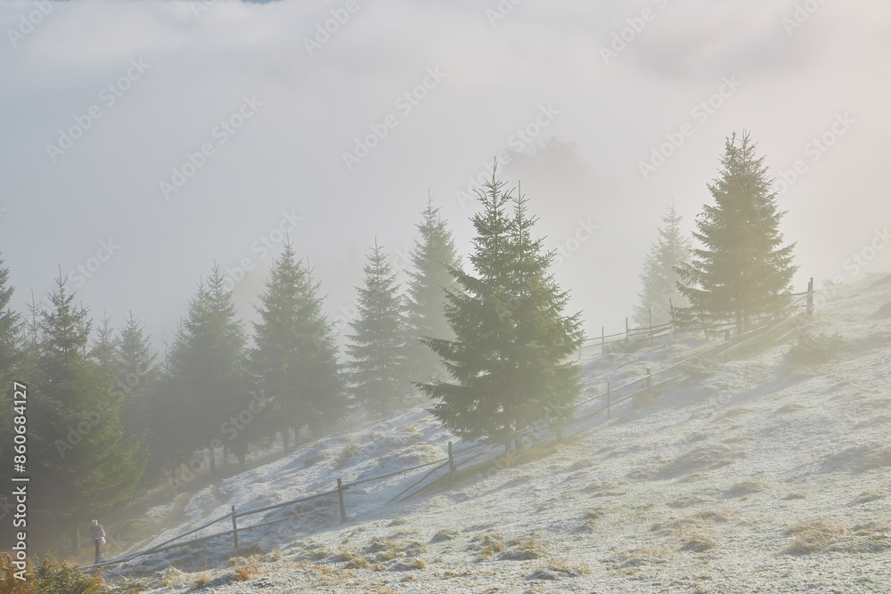 autumn scenery with first frosts in the mountains