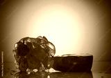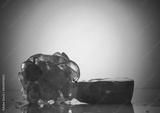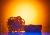 natural ice for product presentation podium background. podium made of ice with colored lighting for perfumery, cosmetics, drinks, alcohol, jewelry.
