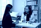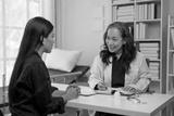 Asian elderly doctor explaining Advising Asian female patients about medicines in hospital Asking about illness history Health check and encouragement health insurance concept.