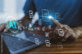 Man using AI artificial intelligence technology AI Assistant support remote work.