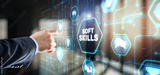 Businessman presses a button Soft Skill Business Development concept
