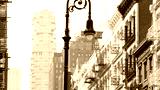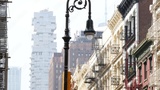 New York City Manhattan Soho fashion district near Broadway street. USA urban building facade, old american architecture. Shopping in NYC, United States. Business and residential real estate. Lantern
