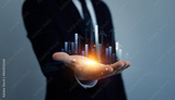 Business growth graph and investment analysis.Development and growth chart.Businessman draw graphic with rising arrows. Financial diagram graph and profit stock market chart.