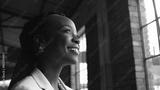 Portrait of a Smiling Woman in a Modern Industrial Setting with Natural Light