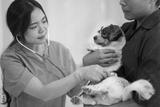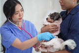 Pet health check and people, Shih Tzu dogs and veterinary doctors with clipboards taking notes at Friendly veterinary clinic