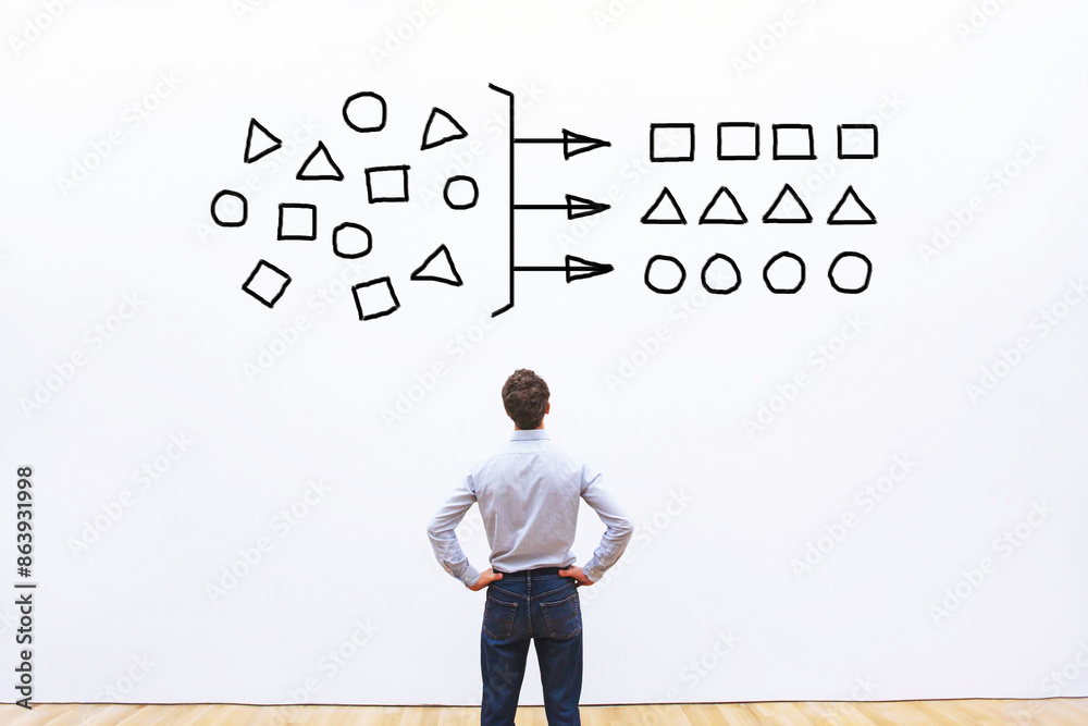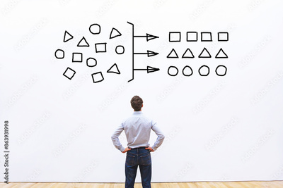 Data analytics concept, sort by type and category criteria, classify and categorize by parameter.