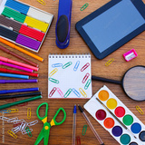 Stationery objects. Office and school supplies on the table. back to school.