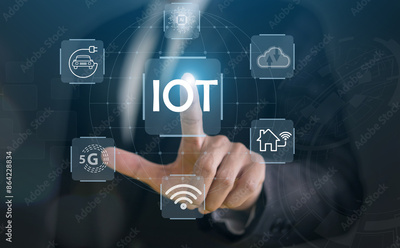 Business professional interacting digital interface Internet of Things, technology, IoT, digital transformation, smart devices and advanced connectivity, cloud storage, Wi-Fi, smart home, AI and 5G