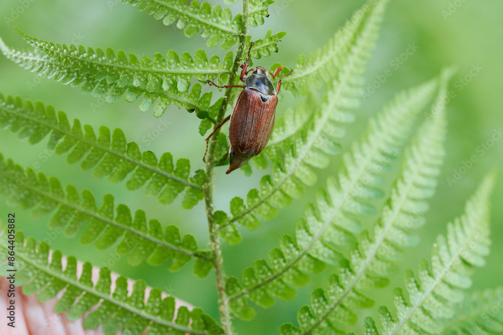Kolorowe polne owady na kwiatach i liściach. Kwiecista łąka. Chrabąszcz.
