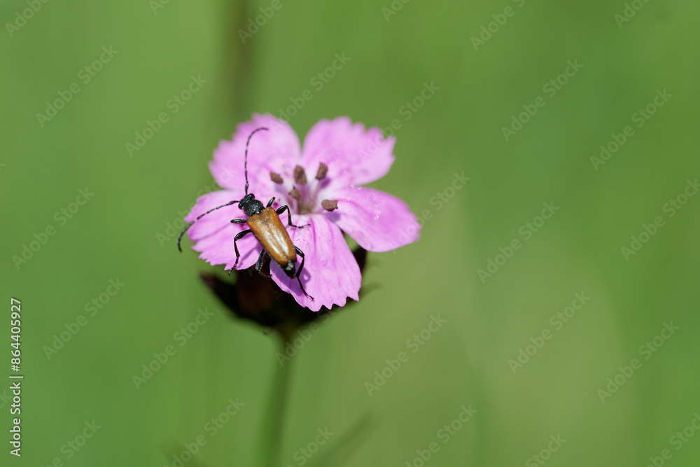 Kolorowe polne owady na kwiatach i liściach. Kwiecista łąka.