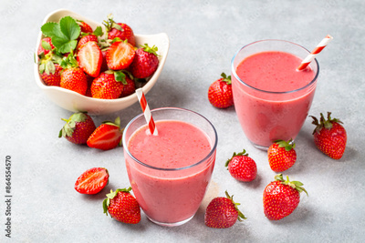 Strawberry smoothie or milkshake drink.