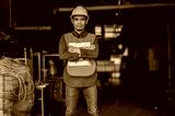 Asian engineer diligently inspects machinery in an industrial factory.Asian workers diligently inspect machinery with focused determination in industrial factories.