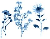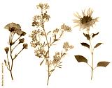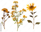 Set of wild dry pressed flowers and leaves