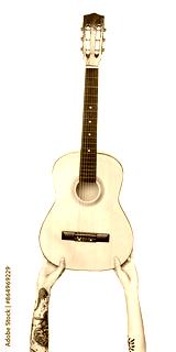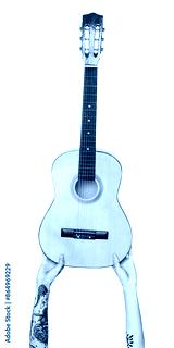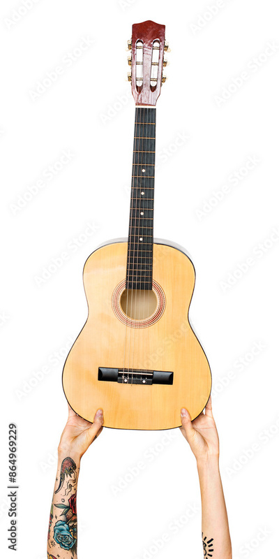 Png hands holding guitar sticker, music instrument, transparent background